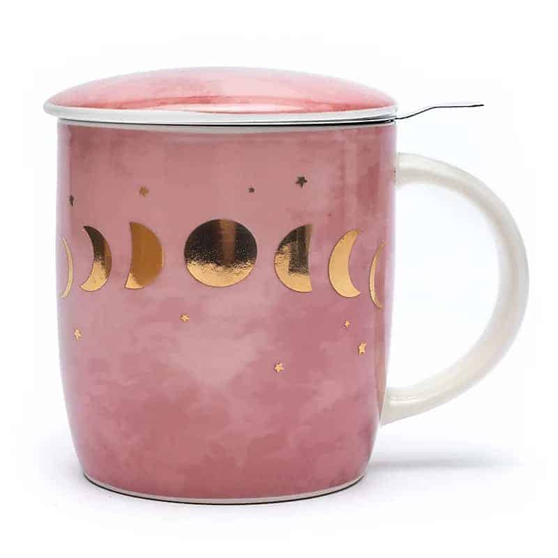 Ceașcă de ceai cu capac și infuzor din oțel inoxidabil, cu design al celor patru faze ale lunii