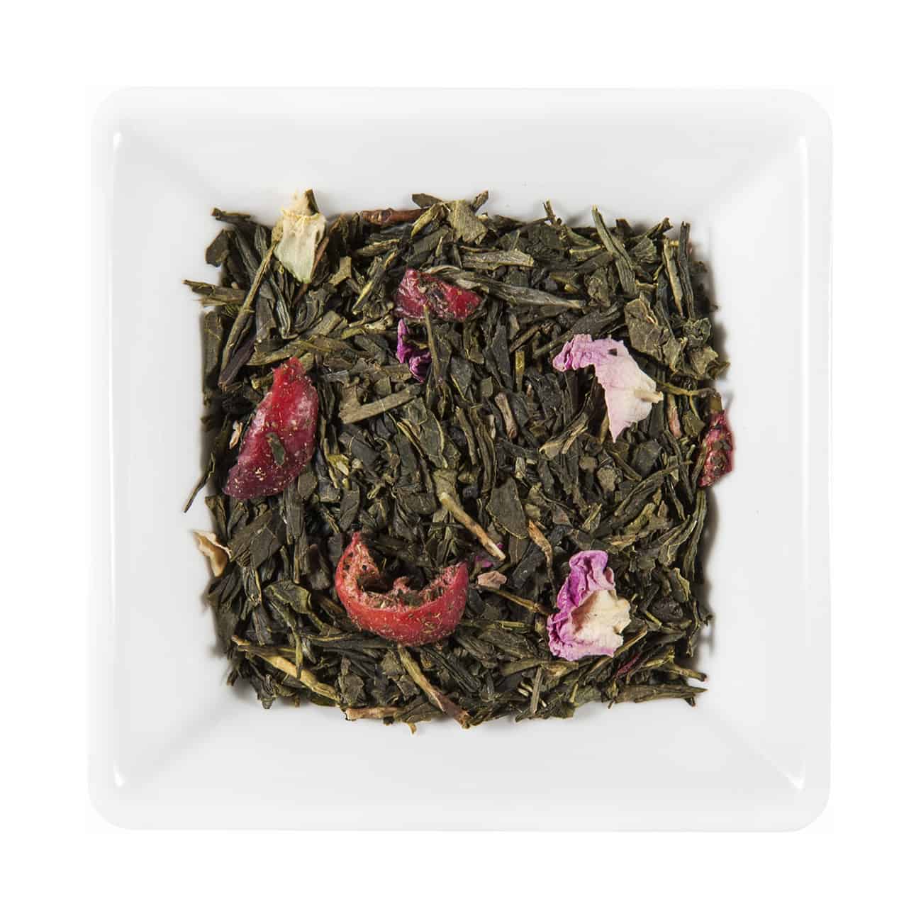 Ingrediente: Ceai verde Sencha (94%), arome naturale, bucăți de afine roșii, petale de trandafir.