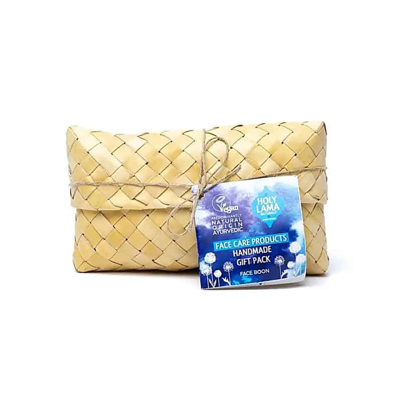 Setul de Călătorie Holy Lama este ideal pentru călătorii, pentru a încerca unele dintre produsele Holy Lama sau pentru a face un cadou. Este ambalat într-o husă ecologică și durabilă, realizată manual din frunze de palmier.