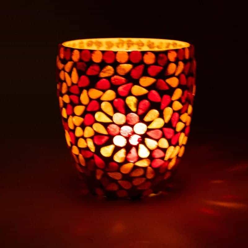 Acest suport pentru lumânări din sticlă mozaic este o piesă decorativă unică și fermecătoare. Designul său prezintă un model mozaic vibrant în nuanțe de roșu, portocaliu și galben, creând un efect caleidoscopic captivant. Potrivit pentru lumânări de ceai, lumânări votive sau becuri LED, acest suport va adăuga o atmosferă caldă și primitoare oricărui spațiu.